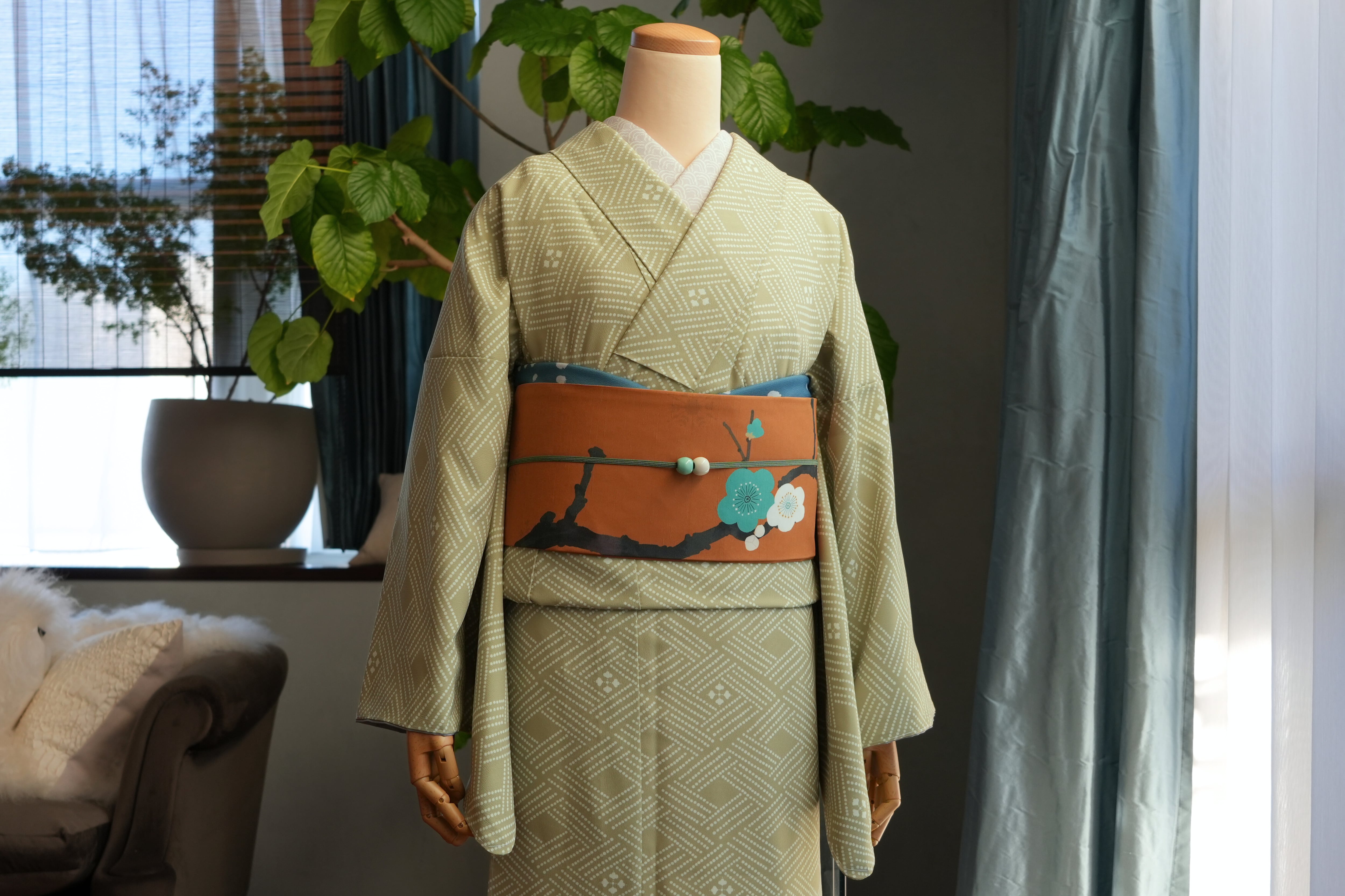「榛色」は暖色も寒色の帯も合わせていただきやすいです。